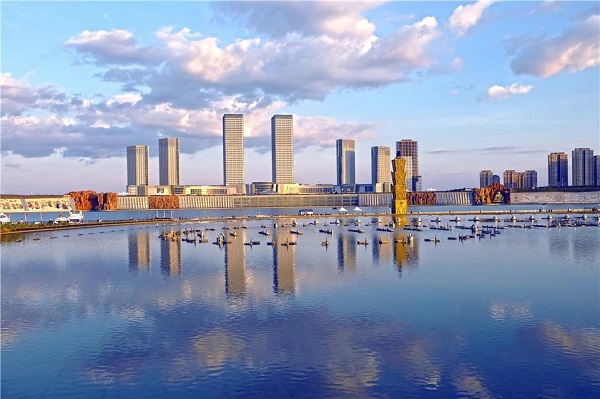 乌兰木伦湖的水面如镜,将康巴什区的高楼、蓝天与白云一一映照。澄澈的湖水旁,现代建筑林立,尽显城市的蓬勃朝气,自然与都市在此和谐交融,绘就出一幅别具一格的美好画卷。(图:王慧 文:王宁)