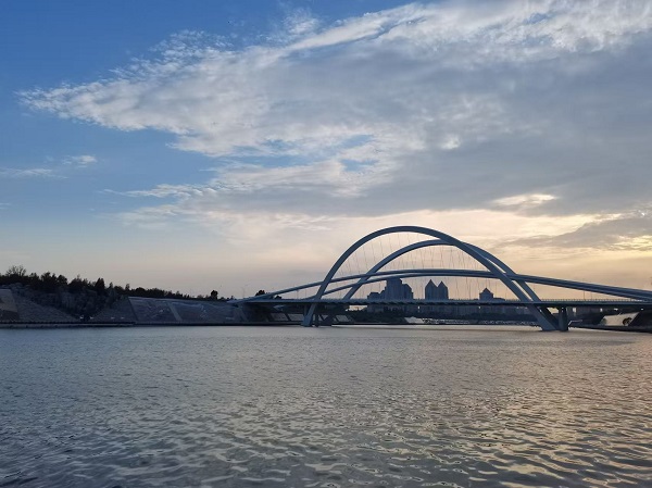 鄂尔多斯市乌兰木伦河3号桥,又名百康桥,是一座横跨乌兰木伦河的特大型景观桥梁,连接了鄂尔多斯市康巴什新区与伊金霍洛旗阿勒腾席热镇,是鄂尔多斯市中心城区一体化发展的重要交通节点工程,促进了康伊片区产业联动与一体化发展,彰显了鄂尔多斯市以高质量发展为人民创造更加安康幸福的新生活的坚定信念。(刘洁)
