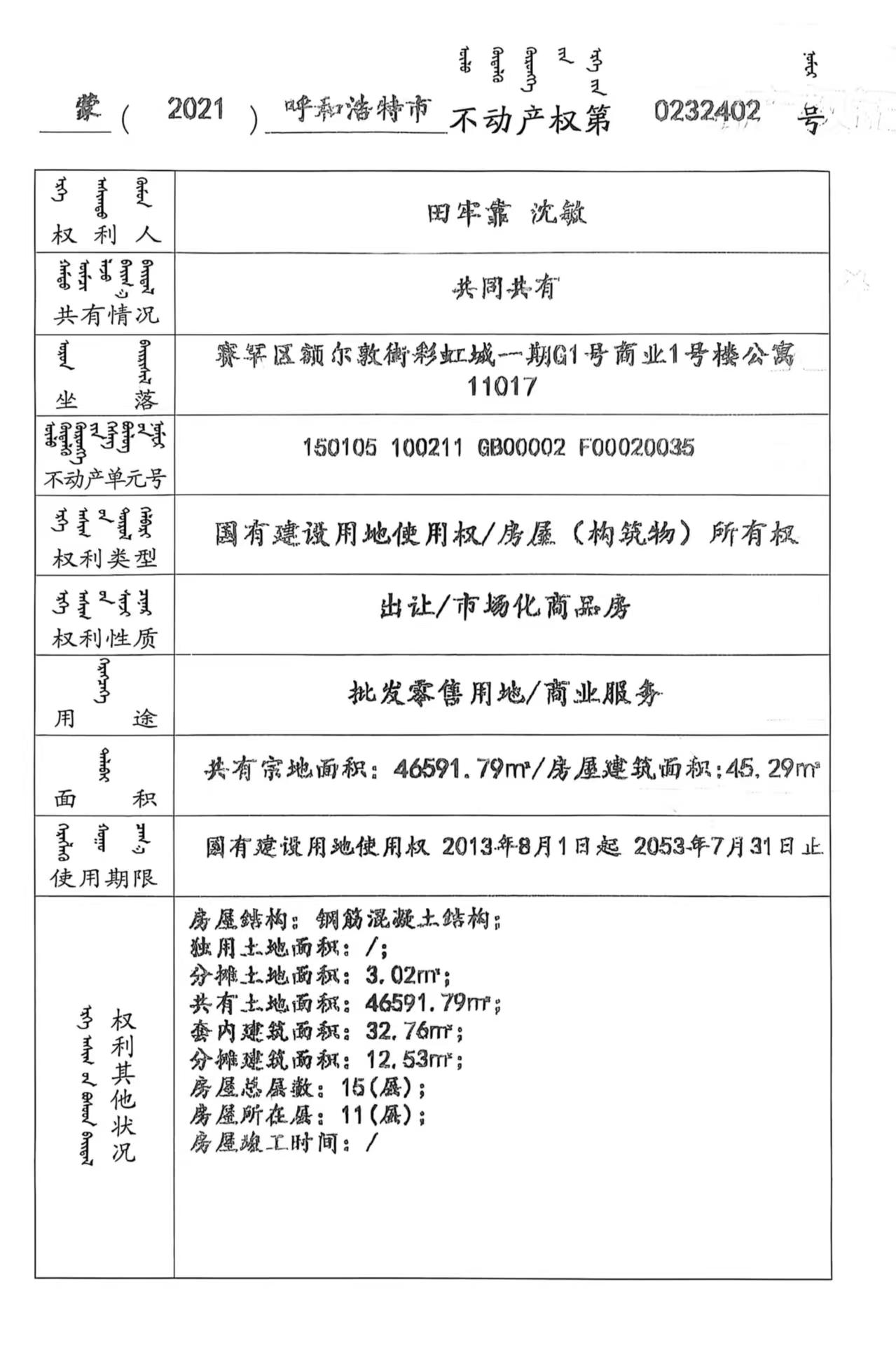 沈敏: 本机关于2025年8月19日收到您提交的政府信息公开申请,申请内容为:呼和浩特五和兴房地产有限公司业主购房增值税中是否包含地下车库和地面停车场?五和兴地产历年缴税纳税情况表,有无偷税漏税情况?本小区物业公司盛雅居物业有限公司历年缴税纳税表?有无偷税漏税情况? 经审查,现答复如下: 关于您申请公开的呼和浩特五和兴房地产相关情况,不属于本机关公开范围。根据《中华人民共和国政府信息公开条例》第三十六条第(五)项规定,建议向国家税务总局呼和浩特赛罕区税务局了解相关信息。 关于您申请公开的盛雅居物业有限公司相关情况,经依法征求第三方意见,第三方不同意公开且有合理理由。根据《中华人民共和国政府信息公开条例》第十五条、第三十二条和第三十六条第(三)项规定,本机关决定不予公开。 如对本答复不服,可在收到本答复书之日起六十日内向国家税务总局呼和浩特市税务局申请行政复议。 感谢您对我单位政府信息公开工作的支持与理解。