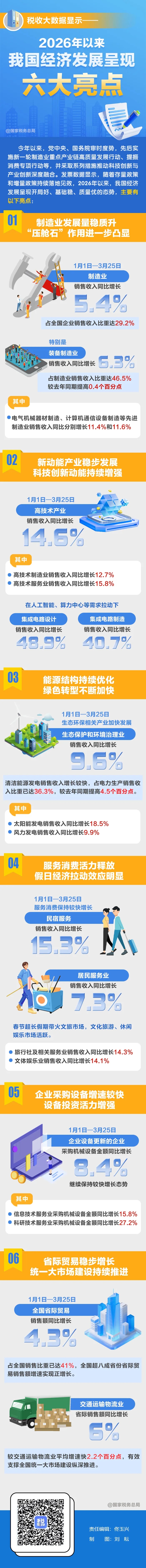 图解|税收大数据显示:2026年以来我国经济发展呈现六大亮点