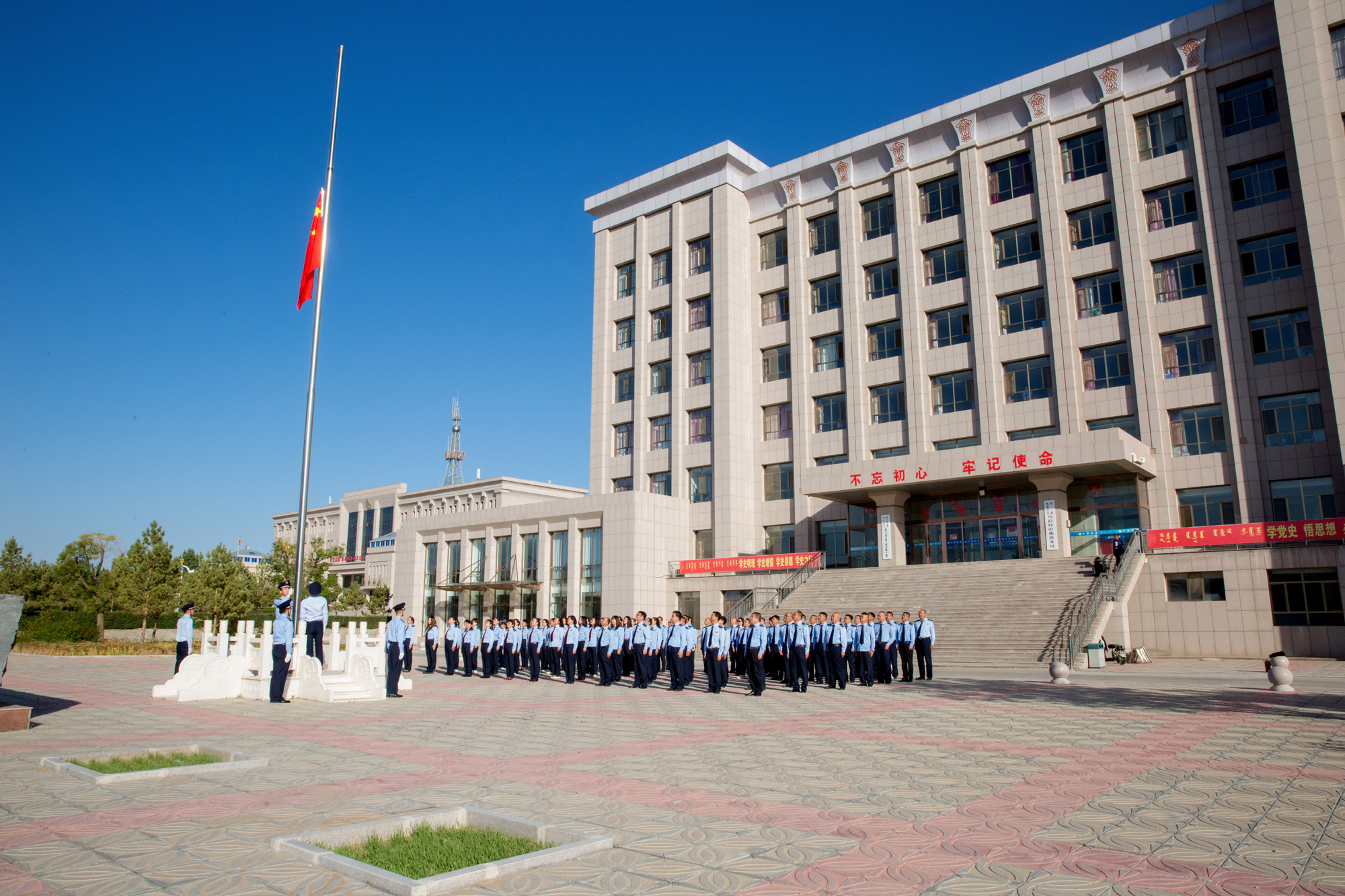 9月29日,9时许,全局税干整装焕发、英姿飒爽,集结于办公楼前广场上组成方队,等候升旗仪式。随着激昂的国歌声奏响,五星红旗冉冉升起,全体税干庄严肃立,合唱国歌,面对高高飘扬的国旗行注目礼,共抒爱国情怀,为祖国表达美好祝福。