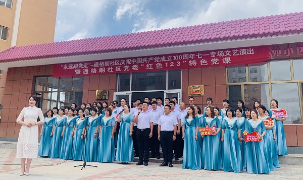 苏里格经济技术开发区税务局联合乌审旗乌兰牧骑走进“3+1”互助共建联系点图克镇达汉庙嘎查,同嘎查党支部开展了“不忘来时路 永远跟党走 迎建党百年 展实践新篇”的庆祝建党100周年主题党日活动。活动通过“唱国歌、坚信念”“讲党课、跟党走”“温誓词、守初心”“ 送政策、暖人心”“ 彰先进、树典型”五个环节的活动共同为党的百年华诞庆生。