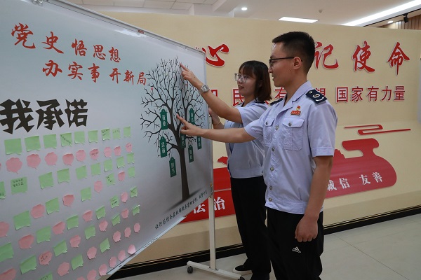 伊金霍洛旗税务局开展“学习百年党史 永葆入党初心”主题党日活动,营造出爱党爱国爱税的浓厚氛围。全体党员参观康巴什政治生活馆党建展厅,从百年党史中汲取奋斗力量,重温入党誓词,坚定理想信念,观看“百年征程永葆初心”主题电影党课,树牢宗旨意识。与通格朗社区联合开展“红色123”特色党课,进行专场文艺演出,组织青年税干参加“永远跟党走”伊金霍洛旗庆祝中国共产党成立100周年群众性大合唱比赛,演唱《唱支山歌给党听》,用心用情歌颂伟大的党,永远听党话、感党恩、跟党走。