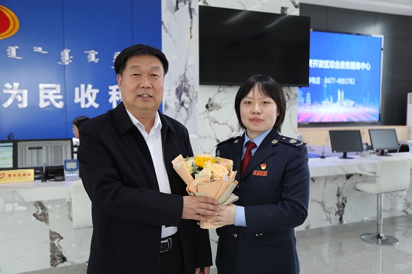 3月8日上午,鄂尔多斯市税务局党委委员、副局长王喜,准格尔经济开发区管委会副主任张富春与相关人员深入准格尔经济开发区税务局办税服务厅慰问女税干,感谢她们坚守税收天职,情注纳税服务,在一线岗位上兢兢业业、默默奉献,为推动税务事业又好又快发展奉献力量,送上节日祝福的同时希望大家履职尽责、锐意进取,彰显新时代女性的巾帼风采,争做雷锋式的税务干部,为当地经济社会健康有序发展贡献税务巾帼力量。