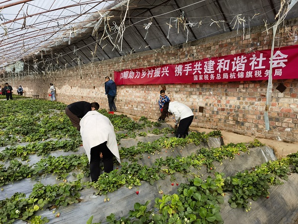杭锦旗税务局组织全体女职工到独贵塔拉工业园区采摘园开展“巾帼助力乡村振兴 携手共建和谐社会”草莓采摘活动,共享丰收喜悦,助力乡村振兴。采摘园里,青草吐绿,草莓飘红,大家交流着工作与生活的感悟,尽情享受“莓”好时光,放下疲惫,亲近自然,尽享采摘的喜悦。欢声笑语中的采摘活动让女职工们在繁忙的工作之余得到了放松,度过了快乐的节日。也通过“爱心采摘+以购代帮”的方式,以实际行动爱农助农,为乡村振兴贡献自己的一份力量。