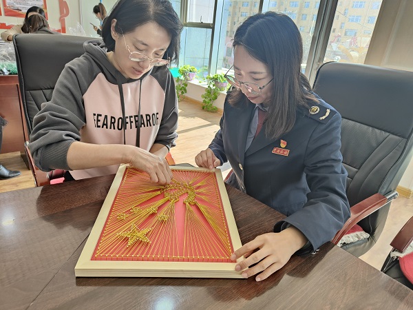 鄂托克旗税务局开展“巾帼心向党 奋斗新征程”系列活动。该局妇委会不断创新活动载体,组织巾帼志愿队伍立足基层、面向家庭,走进妇女群众,关爱老人儿童,援手困难群体,化解家庭矛盾,促进节能减排,做好反诈宣传,解答涉税疑惑,传递社会温情。在钉子绕线画手工活动,大家巧手翻飞,制作出了“巾帼巧手心向党、指尖筑梦绽芳华”的热情。