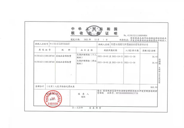 探索建立长期护理保险制度,是党中央、国务院为应对人口老龄化、健全社会保障体系作出的一项重要部署。12月1日,呼和浩特市税务局开出长期护理保险第一张完税证明,标志着呼和浩特市作为全国49个试点城市之一,除养老、医疗、工伤、失业、生育等保险之外的社会“第六险”——长期护理保险顺利开征,成为内蒙古自治区首家试点顺利开征城市。