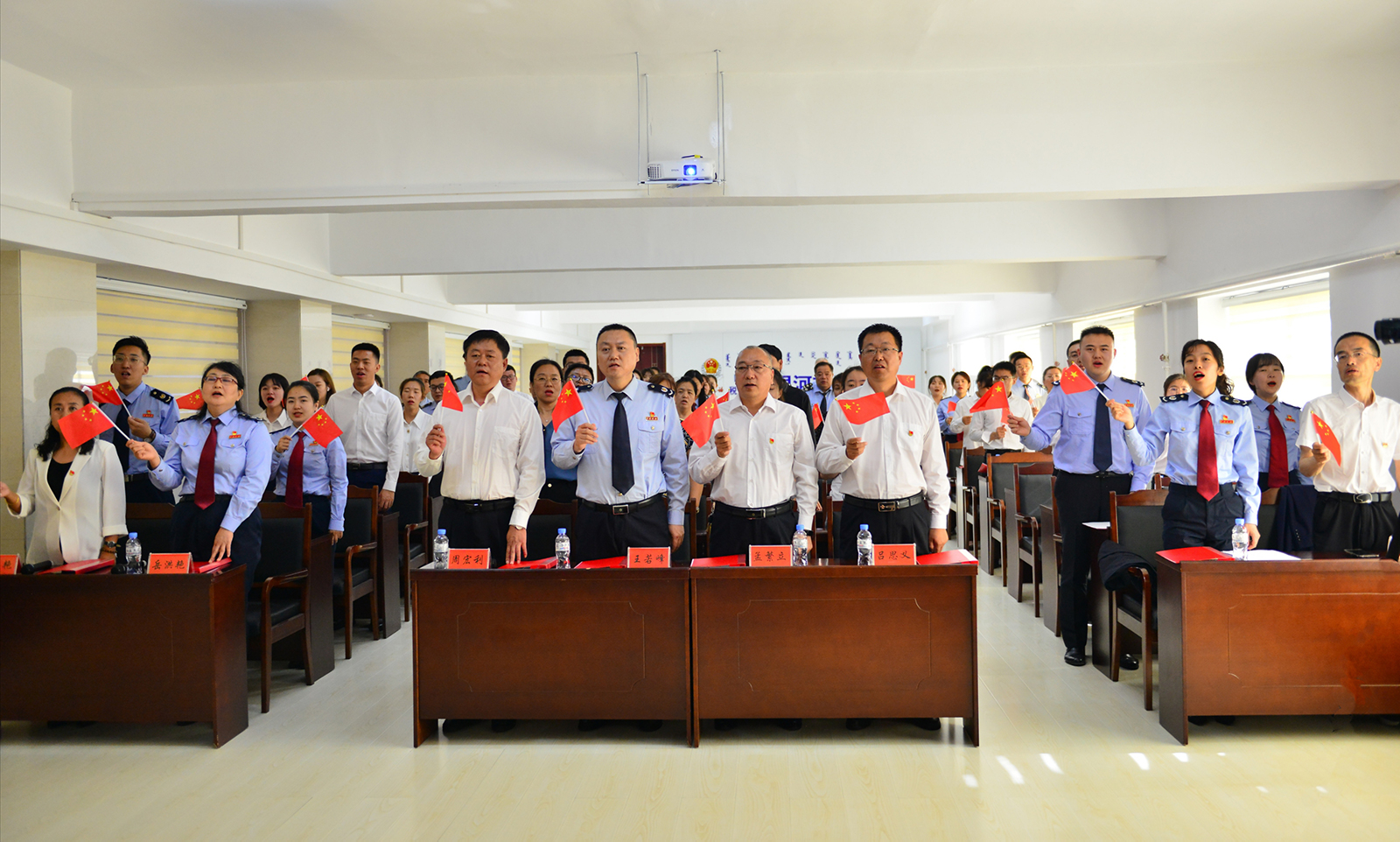 新巴尔虎左旗税务局:国家税务总局新巴尔虎左旗税务局与额布都格出入境边防检查站、额布都格海关、新巴尔虎左旗口岸办、新巴尔虎左旗反恐特警大队、大庆石油国际工程有限公司共同开展“迎百年华诞升国旗温入党誓词守初心”庆祝建党100周年主题活动,进一步发挥“党建+联建”作用,依托“101同心驿站”,巩固党史学习教育工作成果,增强基层组织凝聚力、创造力、战斗力。激昂奋进的国歌激励着党员干部们投身全面建设社会主义现代化国家新征程,铮铮誓言表达了党员干部们对中国共产党的无限忠诚。