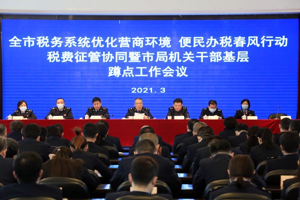 会议还对税费征管问题协同机制运行情况做了通报、对全市“便民办税春风行动”实施方案进行了解读,明确了11类35项107条工作任务。党委委员、副局长韩冶对机关干部下基层蹲点工作进行了安排部署。