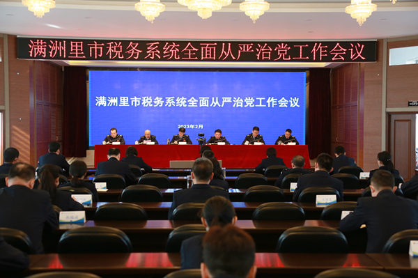 马国智总结了2022年满洲里市税务系统全面从严治党工作。满洲里市税务局党委将政治理论学习走深走实,全面宣传贯彻党的二十大精神,着力推进政治机关建设,旗帜鲜明加强政治建设,坚定做到“两个维护”;周密部署抓推进,勤督查促落实,压力传导促提升,跟踪问效促整改,“两个责任”同向推进,不断夯实管党治党责任;凝聚条块合力,抓好党建业务融合,加强税务文化建设,推动税务党建高质量发展;加强基层组织建设,加强标准化规范化建设,加强干部队伍建设,夯实基层基础,锻造坚强有力的战斗堡垒;深入开展“三项整治”,不断加强执纪问责,加大警示教育力度,营造勤政廉政氛围,严格正风肃纪,激励新时代担当作为。