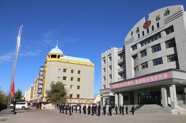 为弘扬爱国主义精神,激发全体税务干部的爱国热情和奋斗激情,10月9日清晨,满洲里市税务局边境经济合作区税务分局在机关办公楼前广场隆重举行升国旗仪式。分局党委班子成员及全体干部职工精神抖擞,整齐列队,共同见证这一庄严时刻。