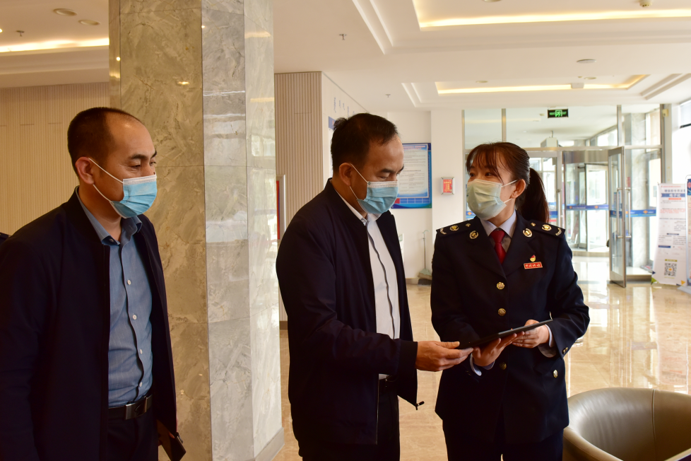 在办税服务厅与努古斯台镇税务所,周晟看望慰问了纳税服务和税源管理一线干部,详细询问了窗口办税缴费服务、电子税务局和自助办税终端推广应用等工作运转情况,倾听基层干部的工作生活状况和思想动态。