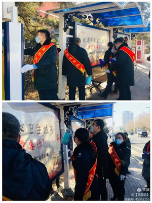 开发区税务局的志愿者们走上街头,对各个公交站点进行消毒清理,为人民群众提供安全卫生的候车环境贡献一份力量。志愿者们携带抹布、铲子、消毒水喷壶等清洁工具来到滨河小区周边公交站点,认真擦洗候车棚、座椅、站牌、分类垃圾箱,让原本布满尘垢的公交站点焕然一新。
