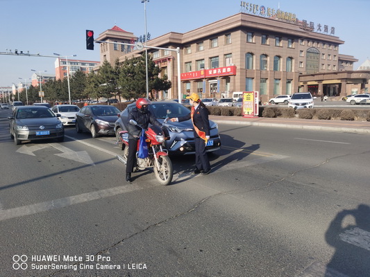 志愿者们协同乌兰浩特市交警支队,开展指挥交通志愿服务活动,以实际行动助力创建文明红城。早上8点,正值上班早高峰,志愿者们一边微笑劝导行人及非机动车辆遵守交通规则,一边帮助执勤民警维持交通秩序。当遇到行人或电动车欲闯红灯时,志愿者们耐心说服,及时纠正市民的不文明交通行为,当遇到行人不走斑马线时,青年志愿者用友好的态度和亲切的语言进行劝导,及时制止。