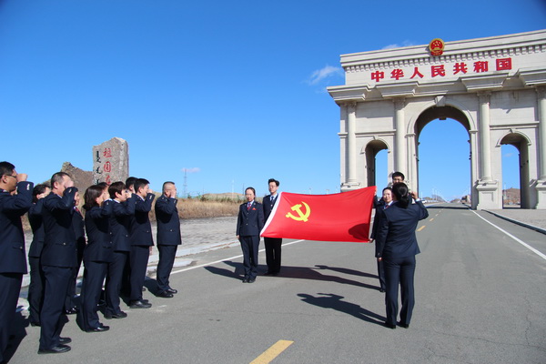 为加强党史学习教育工作,重温党的光辉历史,继承和发扬党的光荣传统和优良作风,进一步增强党的凝聚力和战斗力,激励广大党员坚定理想信念,兴安盟税务局第八党支部和阿尔山市税务局第一党支部的党员们来到兴安盟阿尔山市国门,联合开展重温入党誓词主题党日活动,庆祝中国共产党成立100周年。