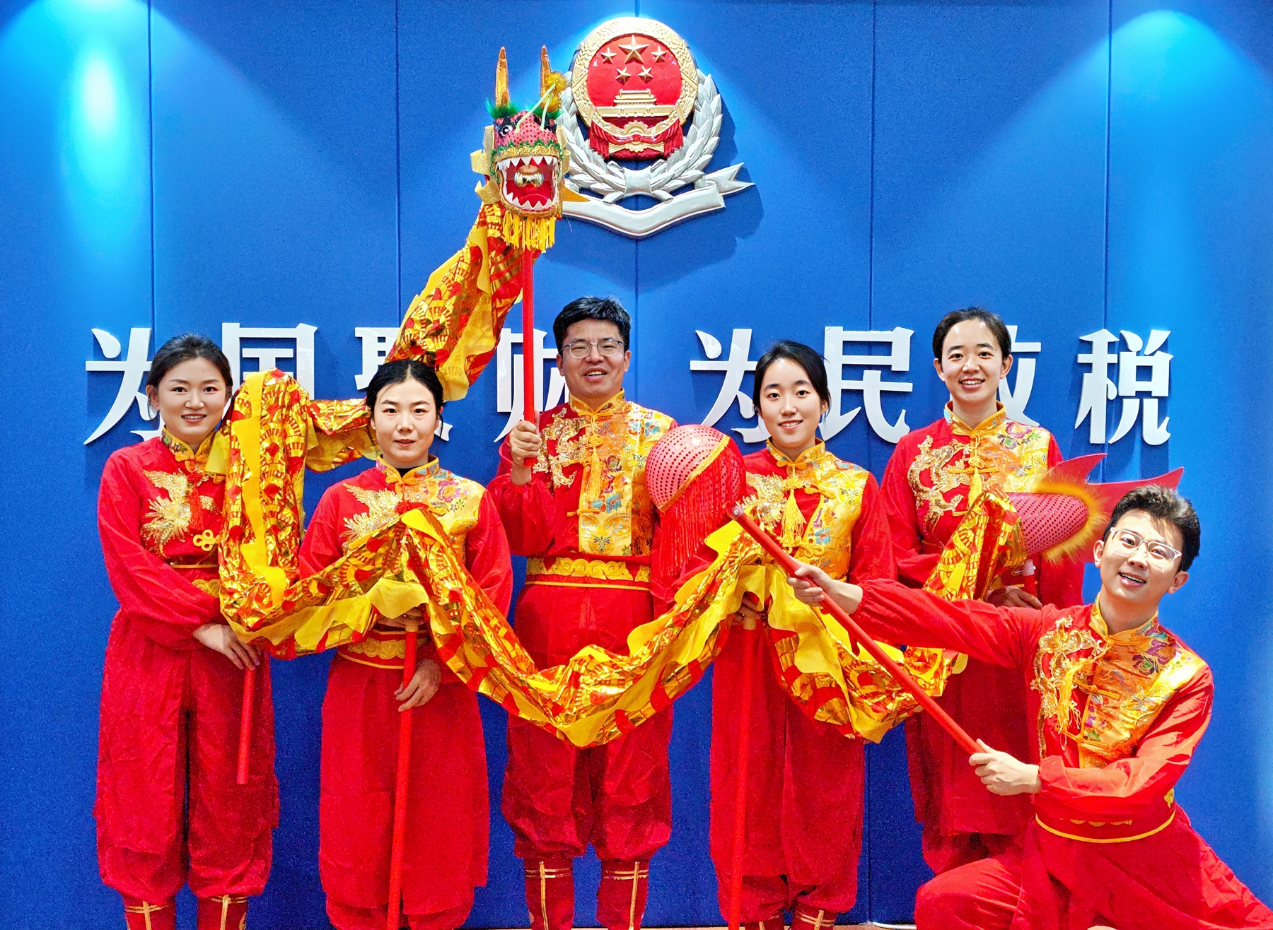 在乌兰察布市,察哈尔右翼中旗税务部门青年税干身着舞龙服、手持龙杆,引领巨龙穿梭腾跃、翻滚盘旋,舞出对新年的美好期许,舞出税务干部凝心聚力、砥砺奋进的昂扬姿态。(陈雪亮 摄)
