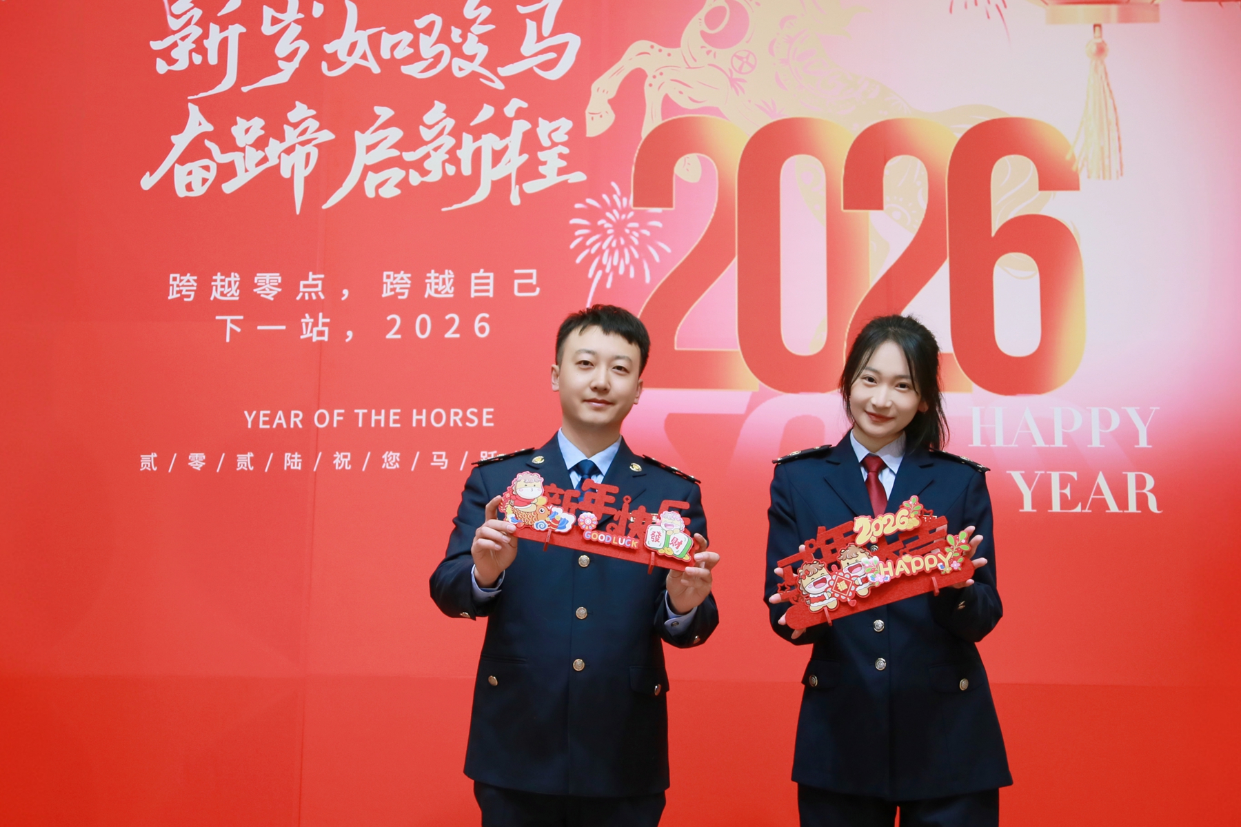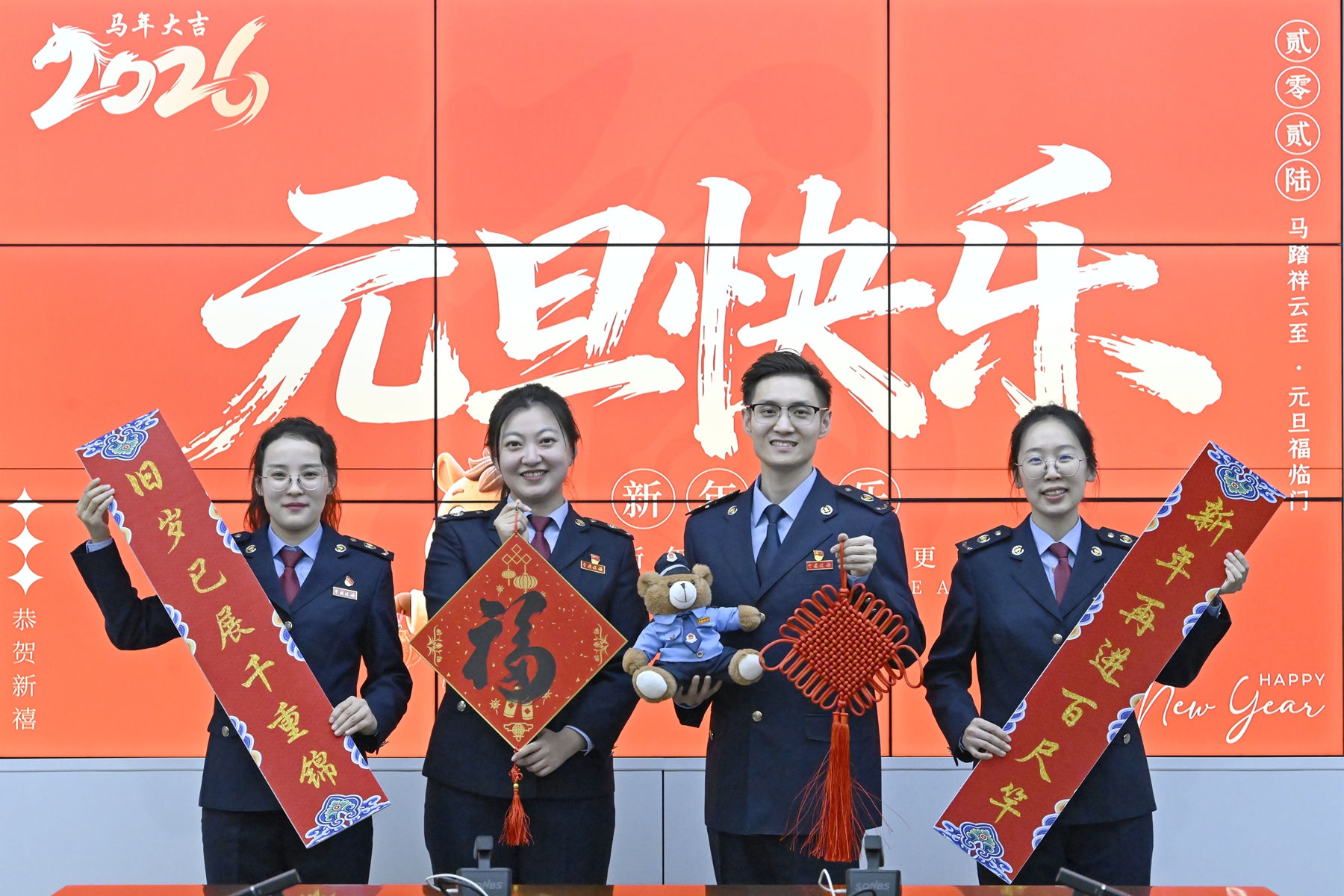 满洲里市税务部门青年干部手持新年装饰,定格美好瞬间,以昂扬的精神风貌迎接新年到来,许下新一年扎根税务岗位、服务地方发展的初心誓言。(王美琦 摄)