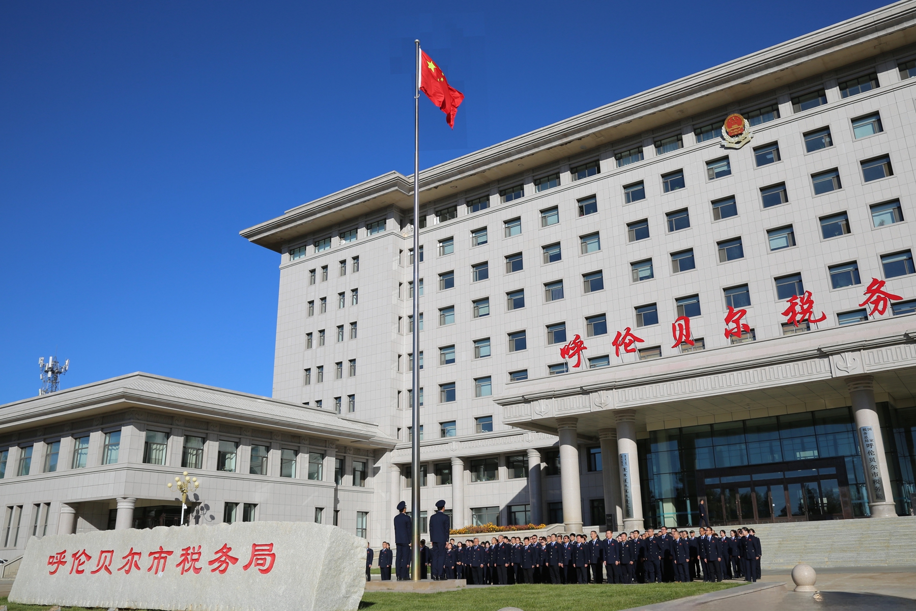图为国家税务总局呼伦贝尔市税务局举行升国旗仪式(常江 摄)
