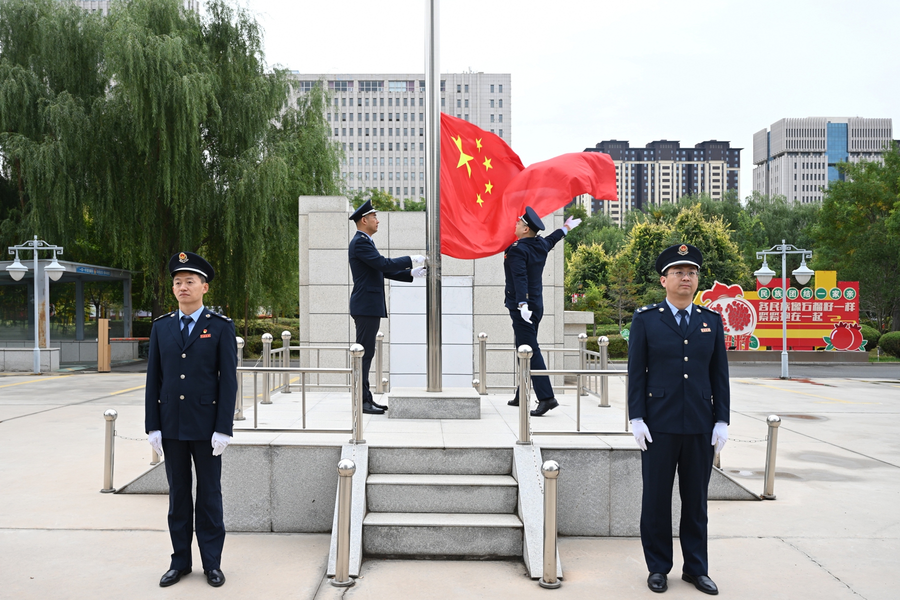 图为国家税务总局二连浩特市税务局举行升国旗仪式(刘从谦 摄)