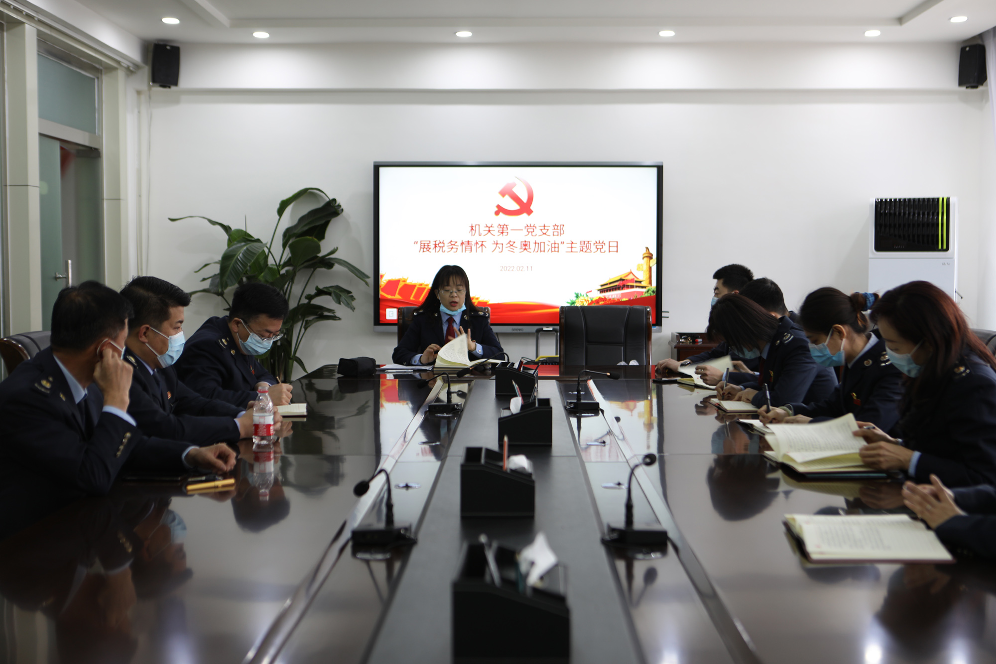 2月11日,国家税务总局五原县税务局机关第一党支部在机关四楼会议室开展“展税务情怀 为冬奥加油”主题党日活动,一起为冬奥加油、为中国加油。活动由机关第一党支部书记王鹤主持,机关第一支部全体党员参加了活动。