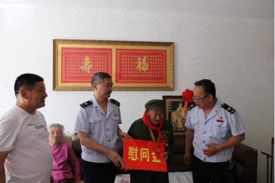 2022年7月21日,在即将迎来“八一”建军节之际,乌拉特后旗税务局呼和温都尔镇税务所党支部联合乌拉特后旗退役军人事务局开展了“迎八一,走访慰问革命老前辈,退役军人税收优惠政策进企业”系列主题党日活动,乌拉特后旗税务局呼和温都尔镇税务所党支部受乌拉特后旗税务局党委委托,为两位抗美援朝老兵送上慰问金,聆听老前辈讲述革命艰苦历程,度过一个意义深远的建军节。