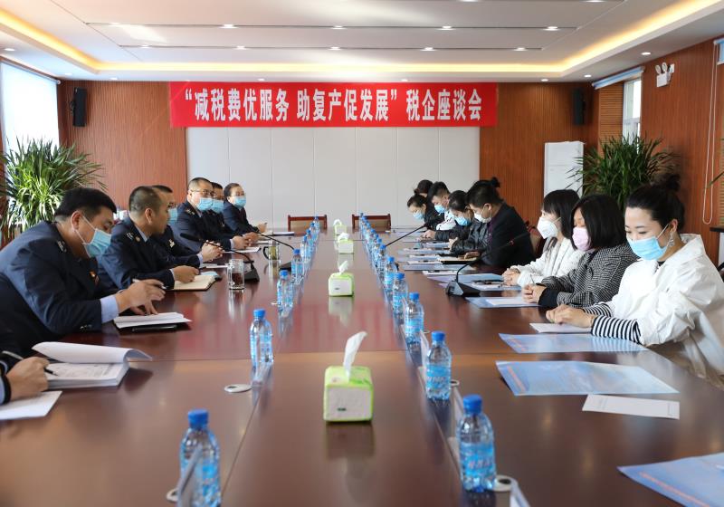 在确保做好安全防护的前提下,座谈会紧扣“减税费优服务 助复产促发展”主题,税政、纳服、社保非税等部门业务骨干向来自全旗各行各业的14个纳税人代表问计问需问难,倾听企业涉税意见或建议,畅谈企业发展。
