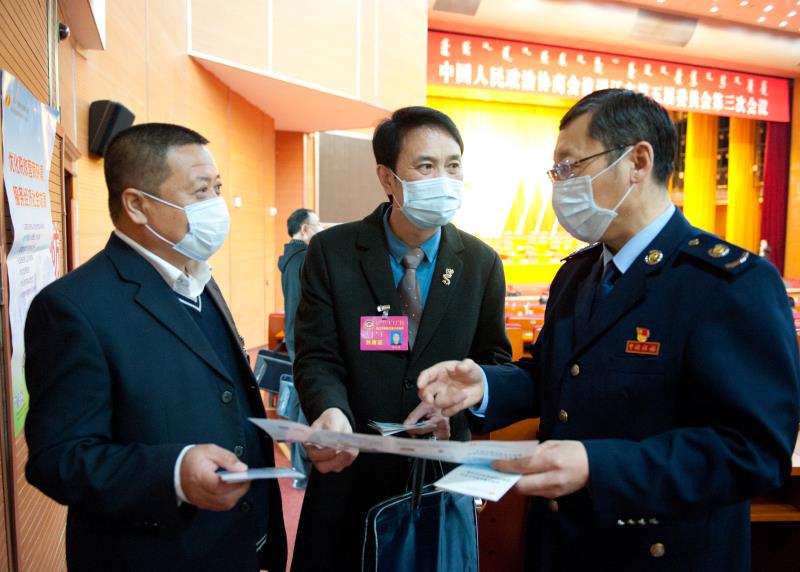 税务干部宣传解读税费政策,听取代表委员的意见建议。