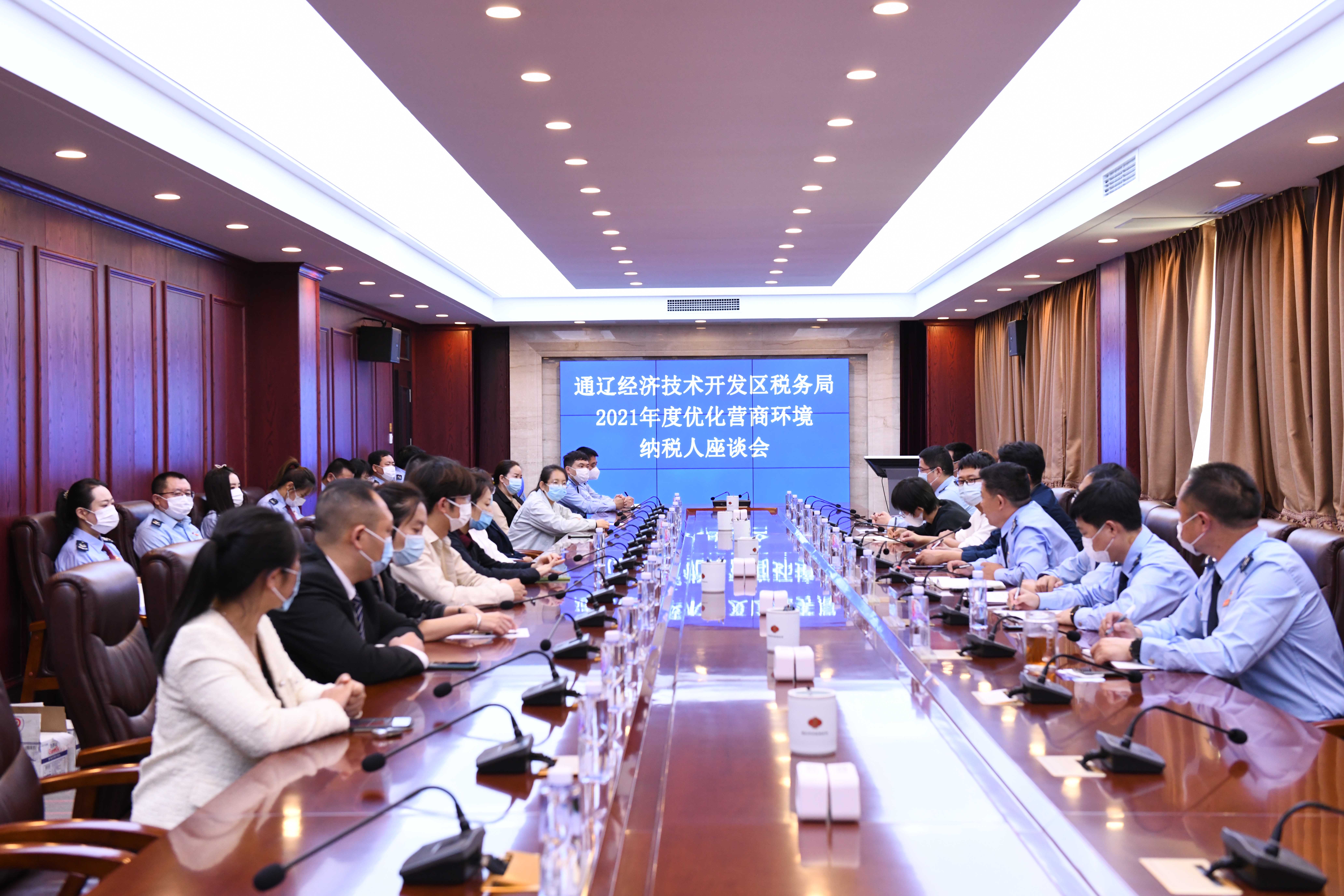 近日,开发区税务局召开“2021年度优化营商环境”纳税人座谈会。市局第一稽查局领导、开发区局领导、局内各部门负责人及相关工作人员参加了此次座谈会。