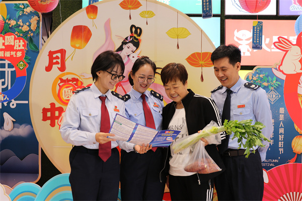 花好月圆日,双喜庆中秋。满满的节日氛围笼罩在包头市地标“万达广场”商圈,包头市税务局第二税务分局干部借助传统节日,现场开展个人所得税宣传辅导,将提高“一老一小”的三项个人所得税专项附加扣除标准的税收优惠政策,送至纳税人手中,让税务服务的温度与祝福满满融汇,与笑意盈盈相合,与纳税人共迎中秋佳节。(胡燕 摄)