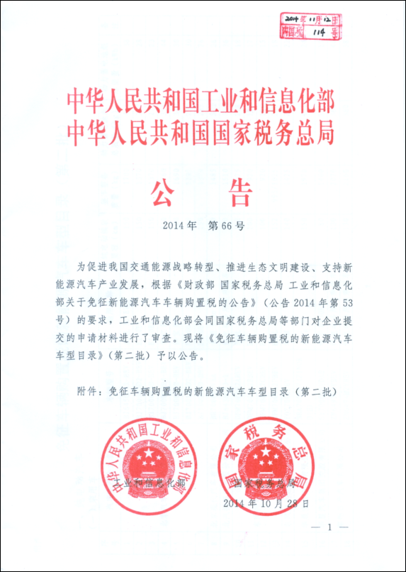 免征车辆购置税的新能源汽车车型目录(第二批)