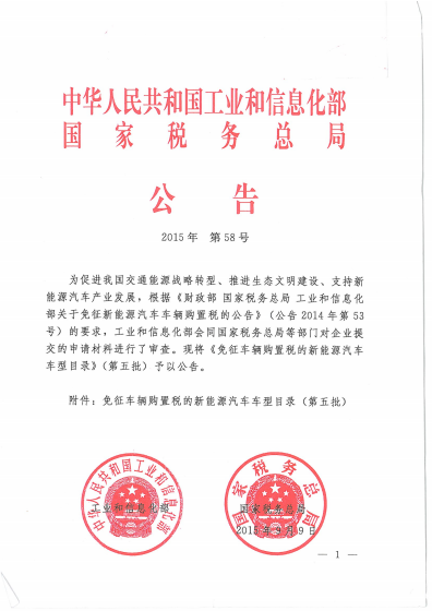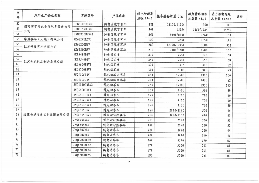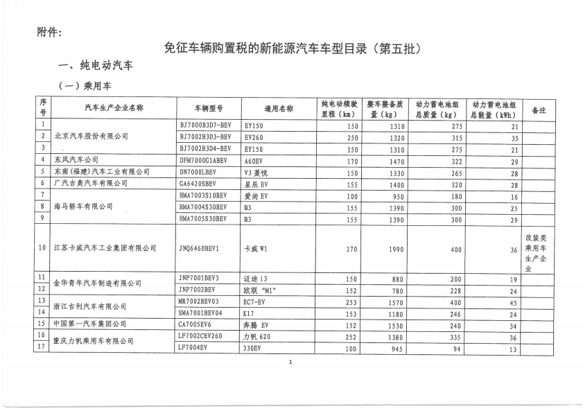 免征车辆购置税的新能源汽车车型目录(第五批)