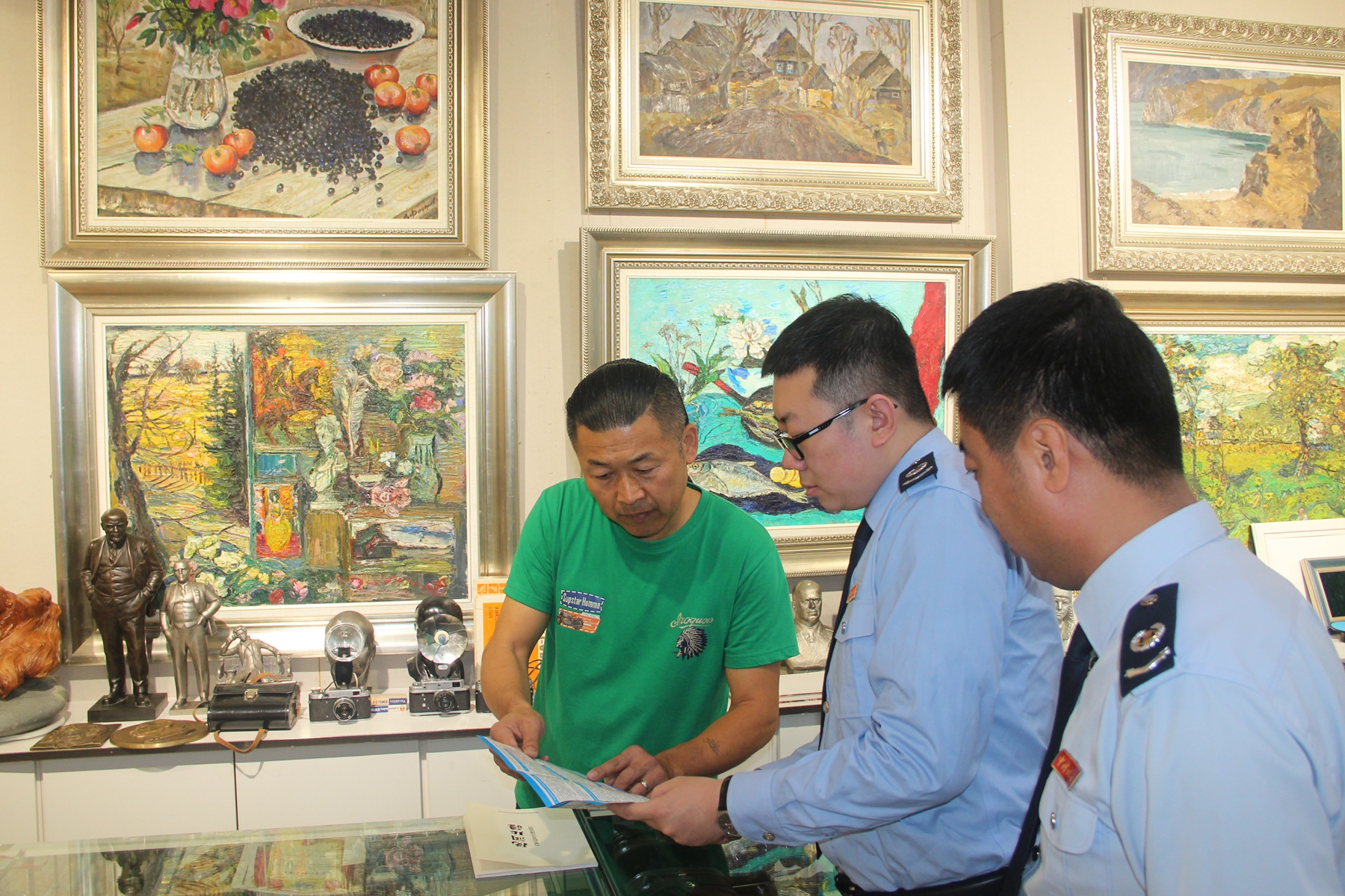 国家税务总局满洲里中俄互市贸易区税务局针对本地油画、艺术行业小微企业开展上门辅导,助力满洲里市打造“一带一路”上的“油画之城”新名片。(张鹏 摄)