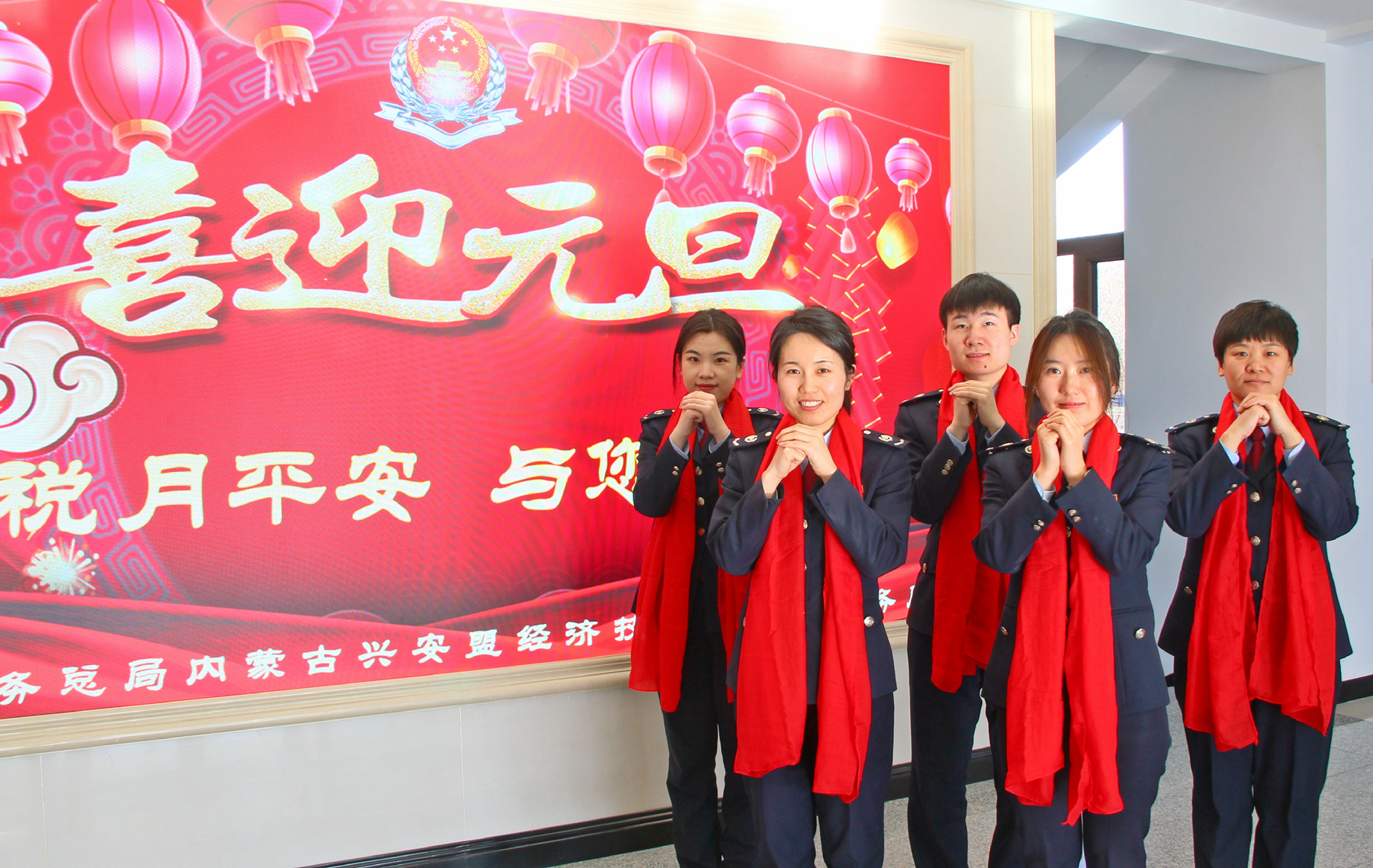 新年将至,国家税务总局内蒙古兴安盟经济技术开发区税务局的青年税务干部们身着整洁的制服,带来新春的美好祝愿。吉祥的红围巾不仅代表着青春的力量,更象征着为广大纳税人缴费人服务的热情和决心。(安俊武 摄)