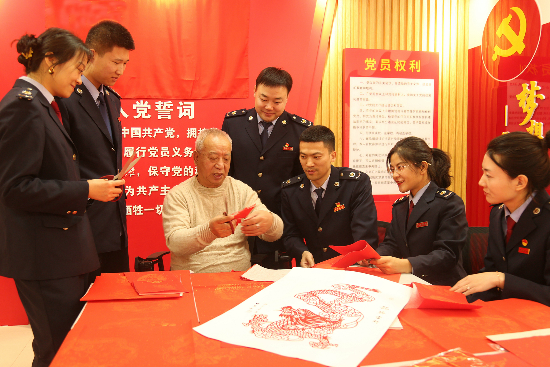 元旦佳节即将来临之际,国家税务总局赤峰市红山区税务局特邀赤峰市剪纸艺术家杨万年老师为大家讲解“龙”的剪纸技艺,从选材、设计到剪裁,每一个环节都是艺术与匠心的结合。通过互动交流,参与者亲身体验到了剪纸艺术的魅力,了解了剪纸的历史渊源、文化内涵,更体会到了传统文化的独特韵味。(王立军 摄)