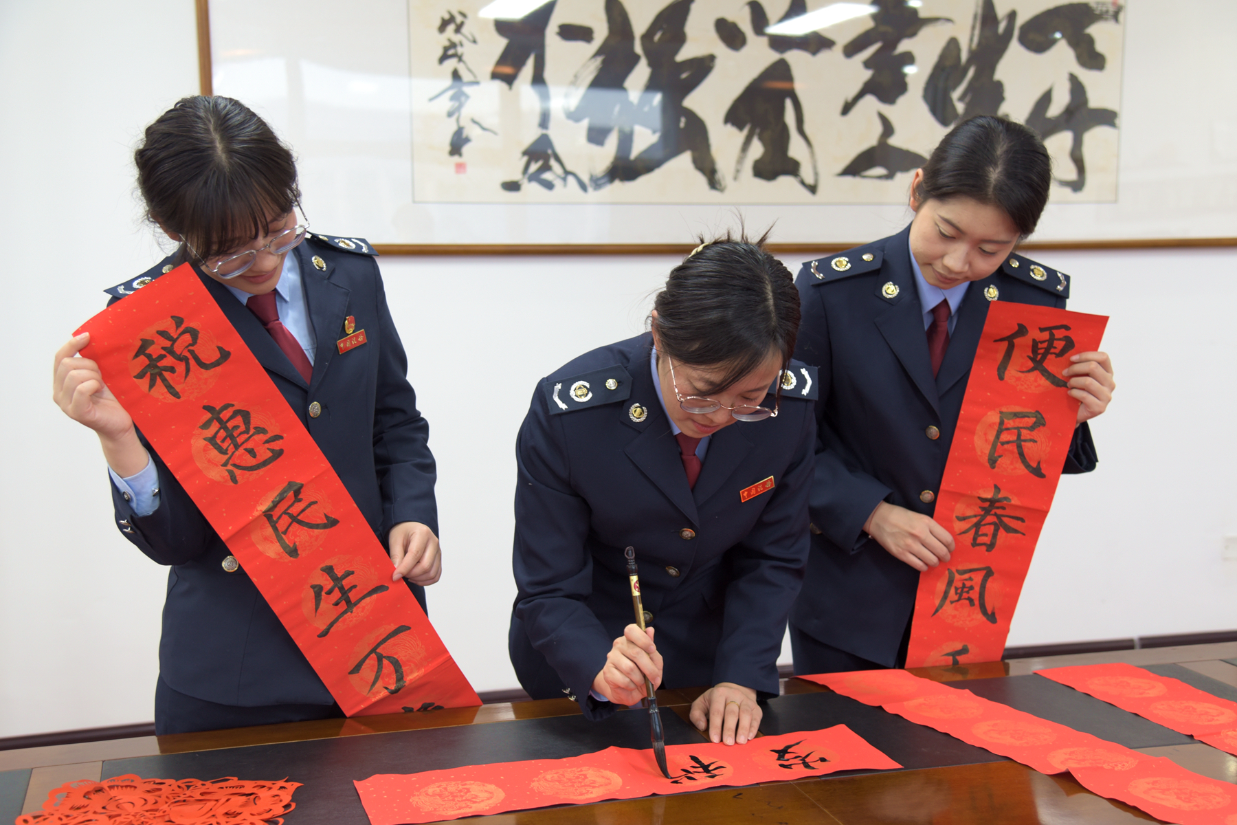 近日,国家税务总局内蒙古乌海高新技术产业开发区税务局举办庆元旦活动。以“庆佳节”为主题,青年理论学习小组成员裁剪各类窗花,手写福字、春联,营造出浓浓的喜庆节日氛围,彰显出蓬勃向上的青春力量,描绘出新一年的新气象、新愿景,以永不懈怠的精神状态迎接新一年的到来。(梁娜 摄)